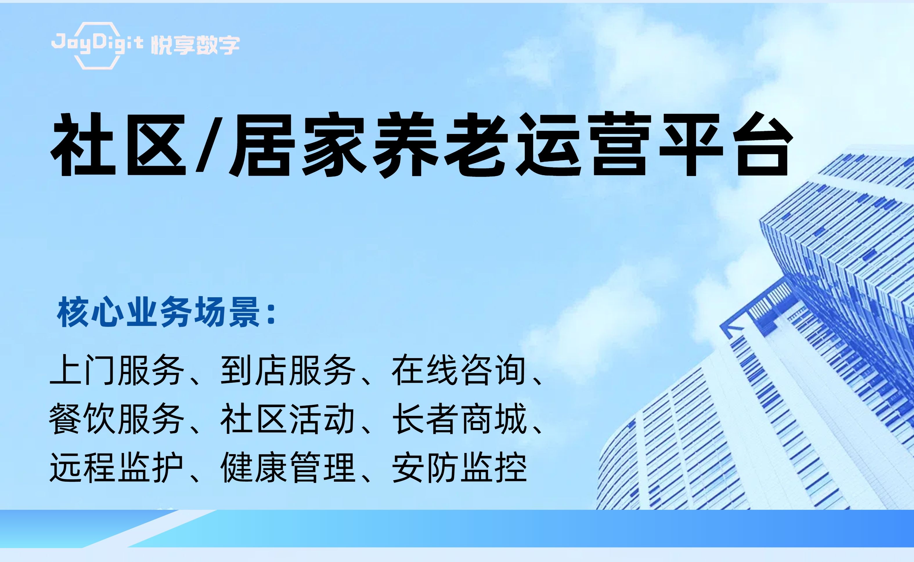 北京悅享數(shù)字科技有限公司(JoyDigit?,簡稱悅享數(shù)字?)作為養(yǎng)老行業(yè)數(shù)字化轉(zhuǎn)型的引領者,以“數(shù)字驅(qū)動健康?,智慧賦能養(yǎng)老?”為愿景,以iSpeed作為養(yǎng)老行業(yè)數(shù)字化轉(zhuǎn)型的標準,通過融合大數(shù)據(jù)、人工智能、物聯(lián)網(wǎng)、區(qū)塊鏈和移動互聯(lián)等創(chuàng)新技術,打造了領先的數(shù)字化養(yǎng)老解決方案-悅享養(yǎng)老數(shù)字化平臺(JoyDigit NexSight Platform),端到端覆蓋了數(shù)字化渠道與銷售、業(yè)務流程標準化與智...